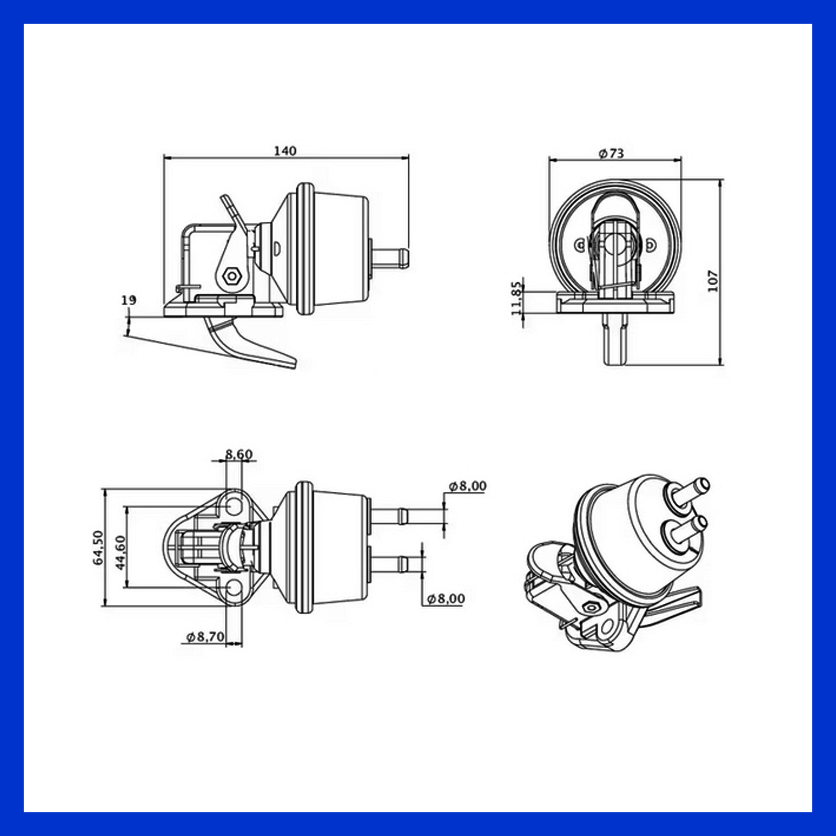 2 - Loch Kraftstoff Förderpumpe mit einem Lochabstand von 45mm passend für die folgenden John Deere