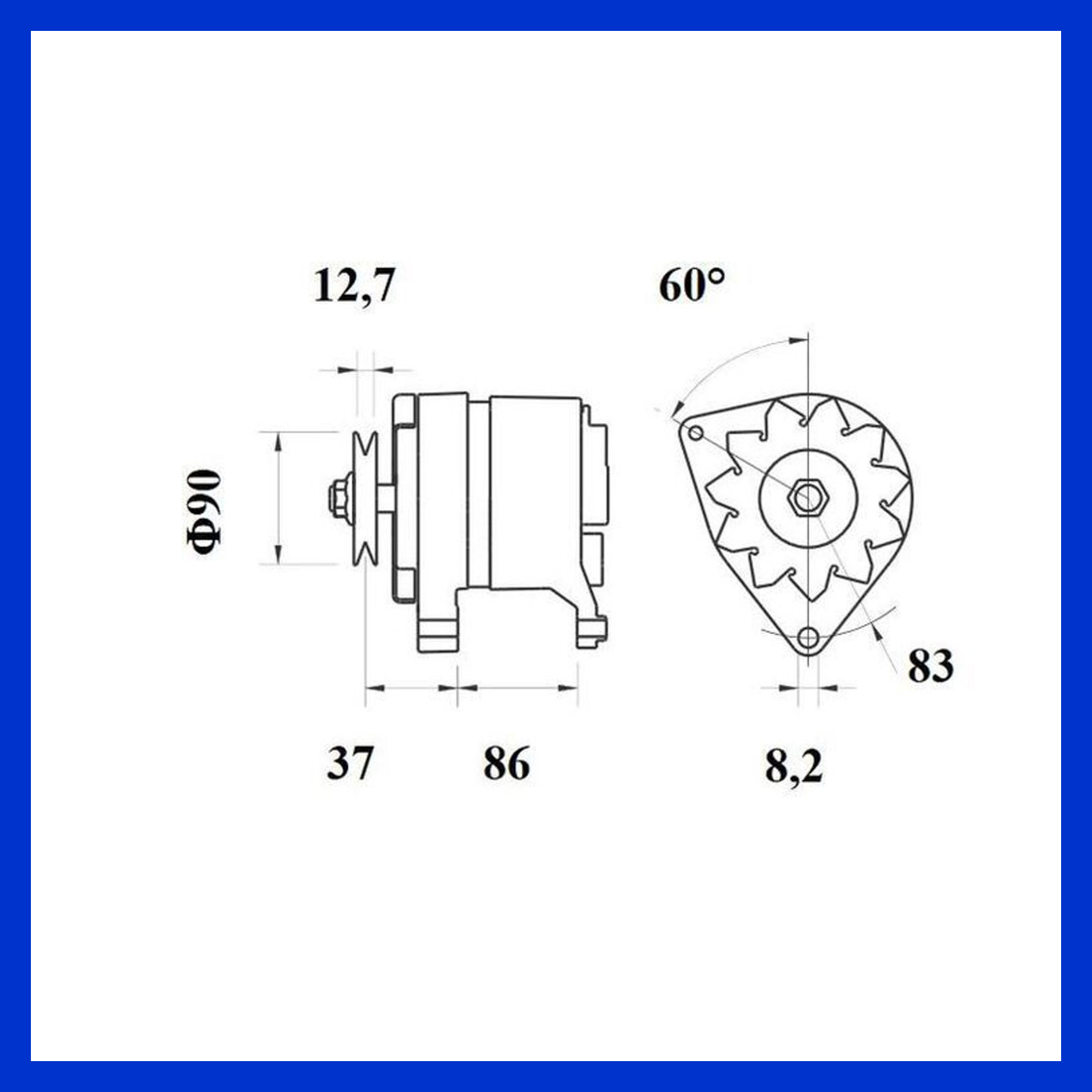 Die Lichtmaschine wird mit Regler, Lüfterrad und Riemenscheibe D = 85mm geliefert