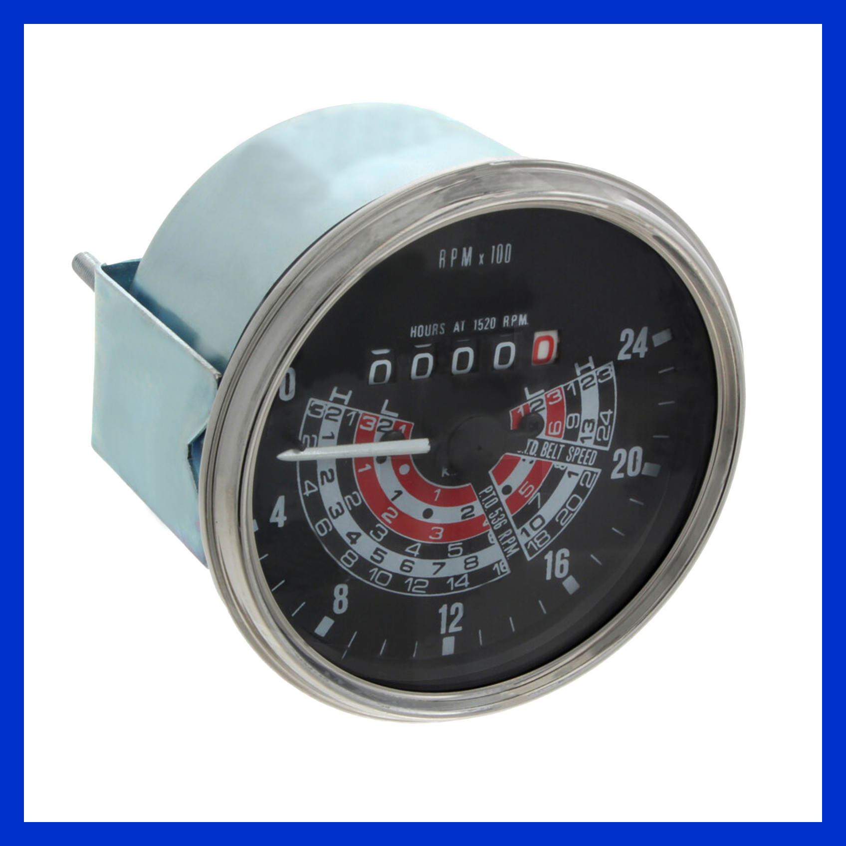 beleuchteter Traktormeter (rechtsdrehend) für Massey Ferguson Trecker des Typ MF 35, mit Perkins A3.152 Motor. Die Geschwindigkeitsanzeige erfolgt in Km/h