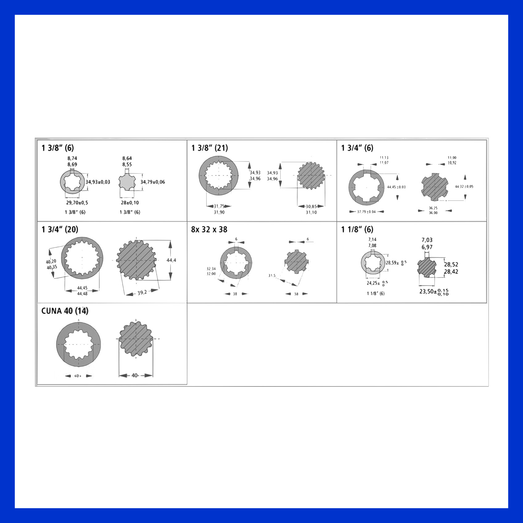 Aussenverzahnung: 1 3/8" 6 Zähne